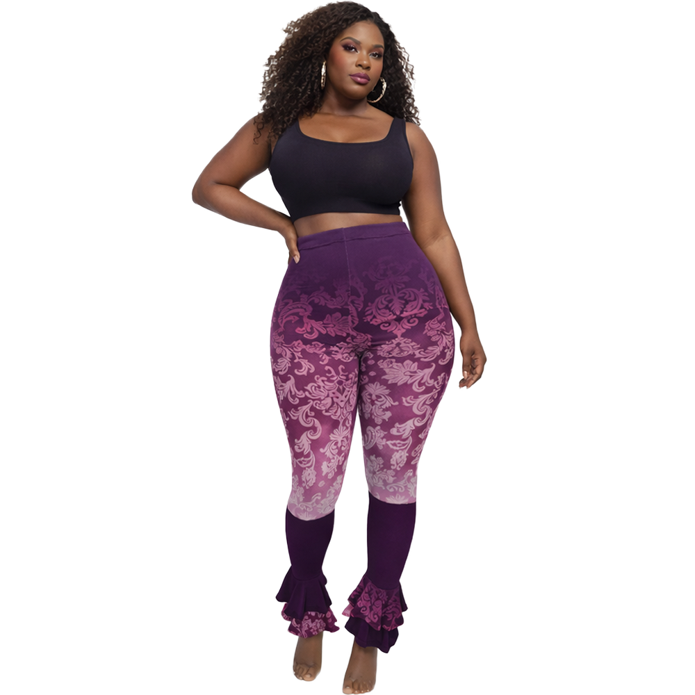 Imagine leggings that combine elegance with functionality. Made from soft, luxurious fabric, they hug your curves beautifully. A unique tulip ruffle detail at each ankle cascades like petals, adding a touch of romance and sophistication. Perfect for yoga, brunch, or a casual stroll, these leggings make you feel effortlessly feminine.